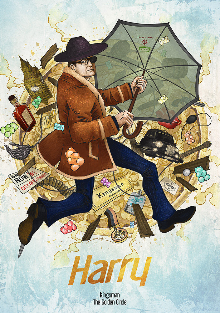 As a huge fan of KINGSMAN: SECRET SERVICE, I imagined fan arts for the release of the second movie: KINGSMAN: THE GOLDEN CIRCLE